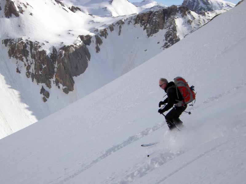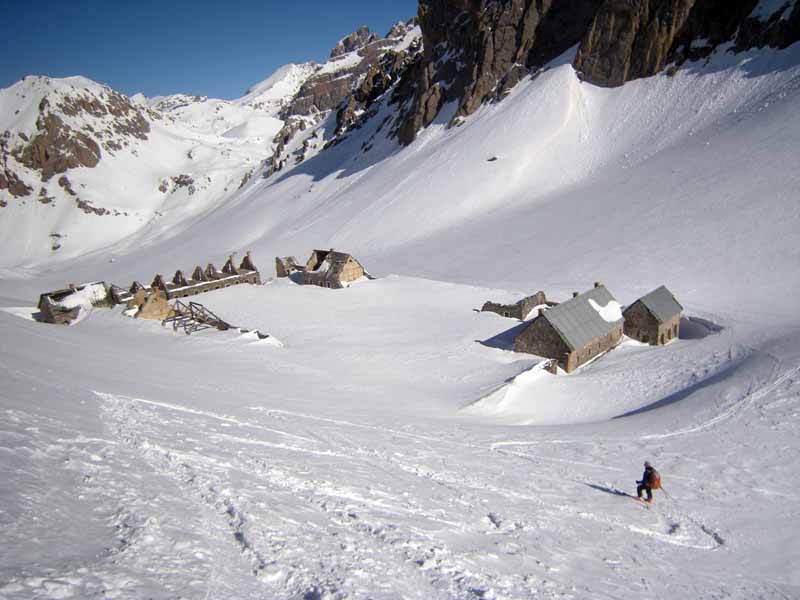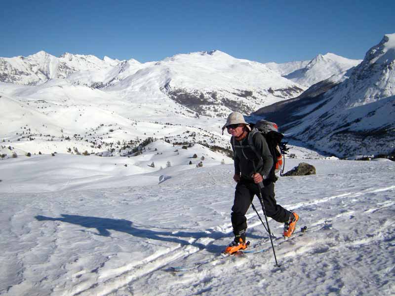 Originally planned as 2 short days this became a 28km monster. An early start is needed for the long south facing climb up Col du Malrit. The winter room at Les Fonts would make a good overnight stop. The Nordic tracks from Les Fonts towards Cerviers help speed progress towards the final climb up to the pistes of Montgenevre.