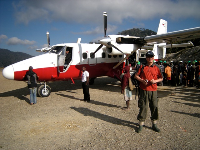 Things began to unravel as soon as we arrived in Indonesia. We learnt that the helicopter I had chartered was non-operational and awaiting a spare part. We were told to expect a delay of around 4 days, so we continued our journey to the island of Papua at the extreme eastern end of the Indonesian Archipelago to find out exactly what the situation was. On landing at Nabire, after an uncomfortable night flight via Makassar and Biak, we could see the stricken helicopter on the tarmac. We were then told that the delay could be up to six days. The required spare part, en route from Europe via Singapore, had been delayed by the Indonesian customs authorities.