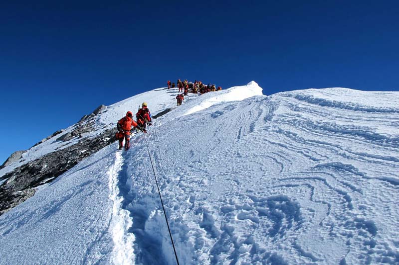 On the plus side this year, the fixed ropes were better quality than ever before and the majority of Sherpas working on the mountain were well clothed and well equipped (mostly wearing helmets where necessary). On the negative side there was an alarming number of people attempting the mountain (many from India or China) who knew nothing about climbing and were totally reliant on being pushed and pulled up and down the mountain by their Sherpas. A growing number of (mostly Nepali based) expedition companies cater for them.