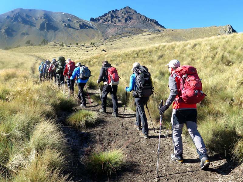 After a long flight from the UK the team assembled in Mexico City and had a day of sightseeing before driving southwest to the city of Toluca. We drove to a private mountain hut at 3700m on the lower slopes of Nevado de Toulca, the country's 4th highest peak. From this base we climbed a subsidiary peak, Pico del Aiguila 4620m, on the 17th. The next day we used a different approach to climb to the highest point, Pico del Fraile 4704m, enjoying fine views over the surrounding landscape before the clouds blew in. Both these climbs stared with a hike through grasslands before encountering more rocky terrain closer to the summits. We saw no other climbers on either day.