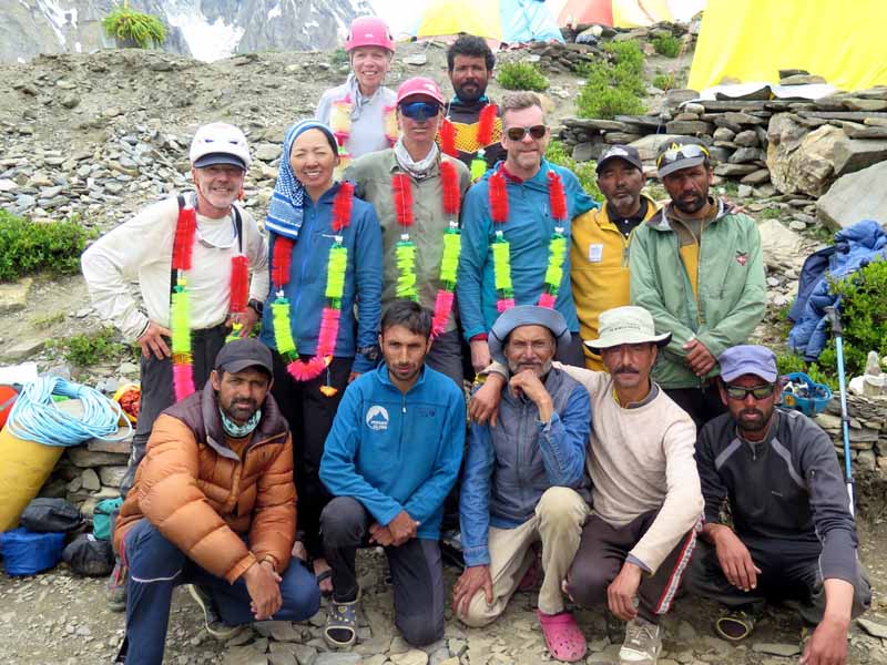 The following day everyone was welcomed back to Base Camp by local guide Ali and the cook team who had made a special cake. After a rest day the local climbing staff returned to Camp 1 to remove the last of our equipment from the mountain. The weather continued unsettled and we endured 3 more days of rain in Base Camp. We realized how lucky we had been to take advantage of the short period of good weather to reach the summit.